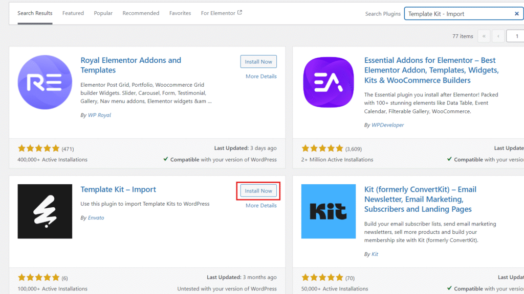 Before importing the template kit, make sure the following plugin requirements are installed and activated: